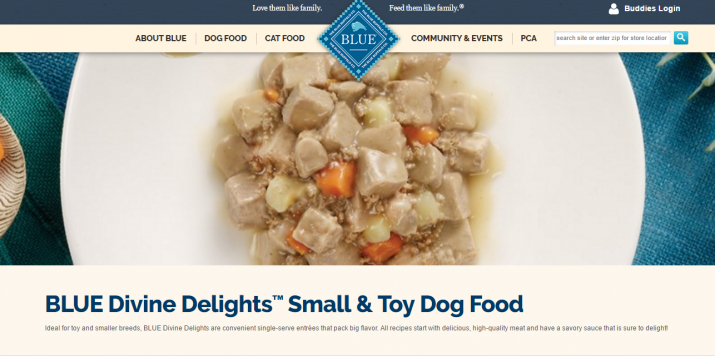 Blue Buffalo Divine Delights Dog Food receives the Advisor’s top rating of 5 stars. Note that Dog Food Advisor does not conduct analytical testing of the actual composition of the dog food product. Rather, their ratings are based on the claimed ingredients on the label.