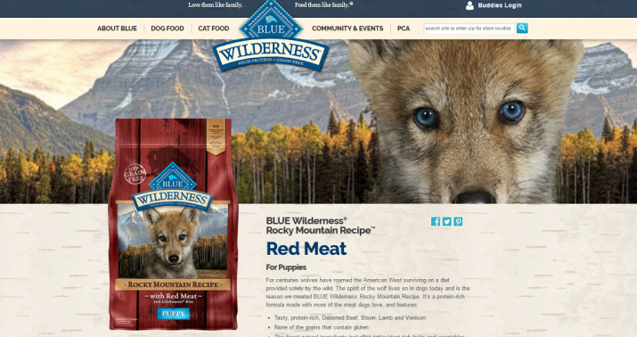 The Blue Buffalo Wilderness Rocky Mountain Recipe product line includes five grain-free recipes, each claimed to meet AAFCO nutrient profiles for adult maintenance.