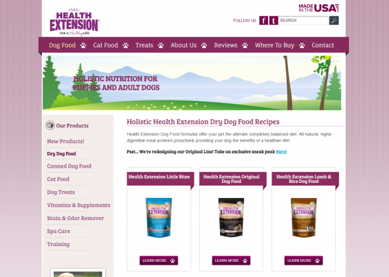 The Health Extension product line includes six dry dog foods.